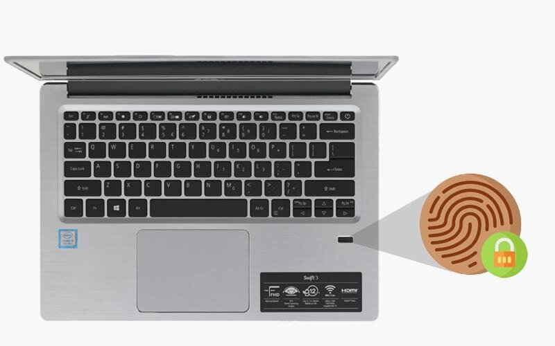 Việc người khác lén xem trộm mật khẩu của bạn giờ đây không còn là vấn đề với bảo mật vân tay trên Laptop Acer Swift SF314 56 38UE. Bạn chỉ cần đặt ngón tay trên cảm biến vân tay thì chiếc laptop sẽ tự động đưa bạn vào màn hình desktop chỉ trong vài giây.