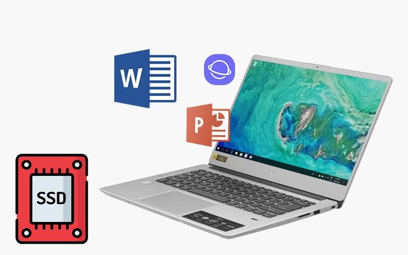 Chip Intel core i3 thế hệ thứ 8 cùng bộ nhớ tạm lên đến 20 GB RAM cho bạn trải nghiệm làm việc mượt mà, vi vu lướt web, đánh văn bản không trở ngại. Ngoài ra, laptop Acer Swift SF314 56 38UE có thể khởi động cực kỳ nhanh chóng nhờ ổ cứng SSD siêu nhanh.