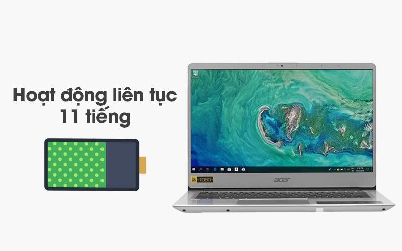 Nỗi lo quên mang sạc giờ đây không còn là vấn đề khi chiếc laptop Acer Swift SF314 56 38UE được sạc đầy. Với thời lượng pin lên đến 11 tiếng, đó là điều hiển nhiên khi chiếc laptop này có thể trụ được một ngày làm việc mà không cần bộ sạc hay ổ điện nào.