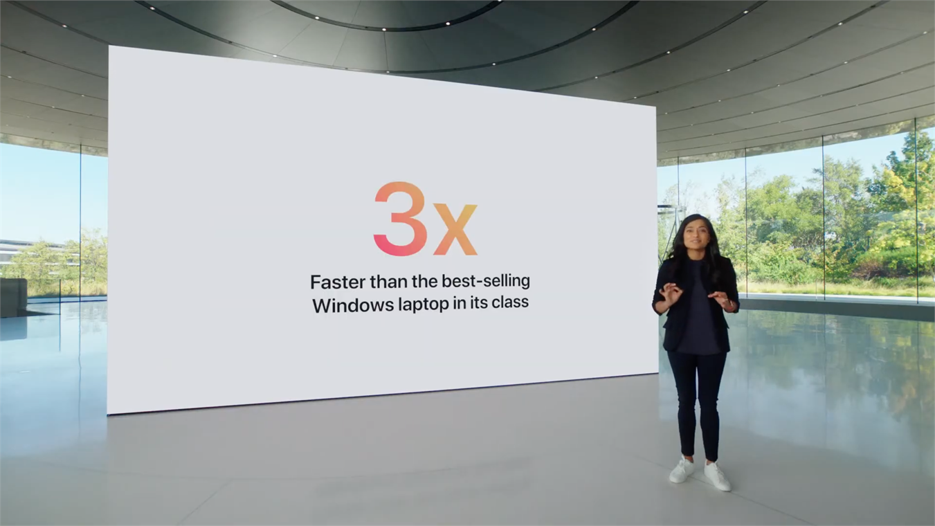 Thiết kế không đổi MacBook Pro 13-inch M1 mới sẽ giống hệt thế hệ cũ, từ kích thước, cân nặng, cho đến các chi tiết như màn hình, bàn phím Magic Keyboard hay Touch Bar. Tất cả những thay đổi của MacBook Pro 13 inch mới đều nằm ở phần cứng bên trong. Hiệu năng M1 là vi xử lý mới được Apple sản xuất riêng cho dòng máy Mac dựa trên tiến trình 5nm mới nhất, bao gồm 8 nhân CPU (4 nhân hiệu năng cao, 4 nhân tiết kiệm điện) và 8 nhân GPU tích hợp. Apple cho biết M1 có thể cho hiệu năng nhanh hơn tới 2.8 lần so với thế hệ MacBook Pro 13-inch trước đó chạy chip Intel thế hệ 10. Về đồ hoạ, GPU tích hợp của M1 sẽ nhanh hơn 5 lần so với GPU tích hợp của Intel trên thế hệ MacBook Pro trước đó. Apple tự tin rằng MacBook Pro 13-inch nhanh hơn gấp 3 lần so với chiếc laptop Windows bán chạy nhất ở cùng phân khúc. Người dùng có thể làm được những tác vụ mà chưa một laptop Windows mỏng/nhẹ nào khác làm được, ví dụ như chỉnh sửa video 8K bằng phần mềm DaVinci Resolve.