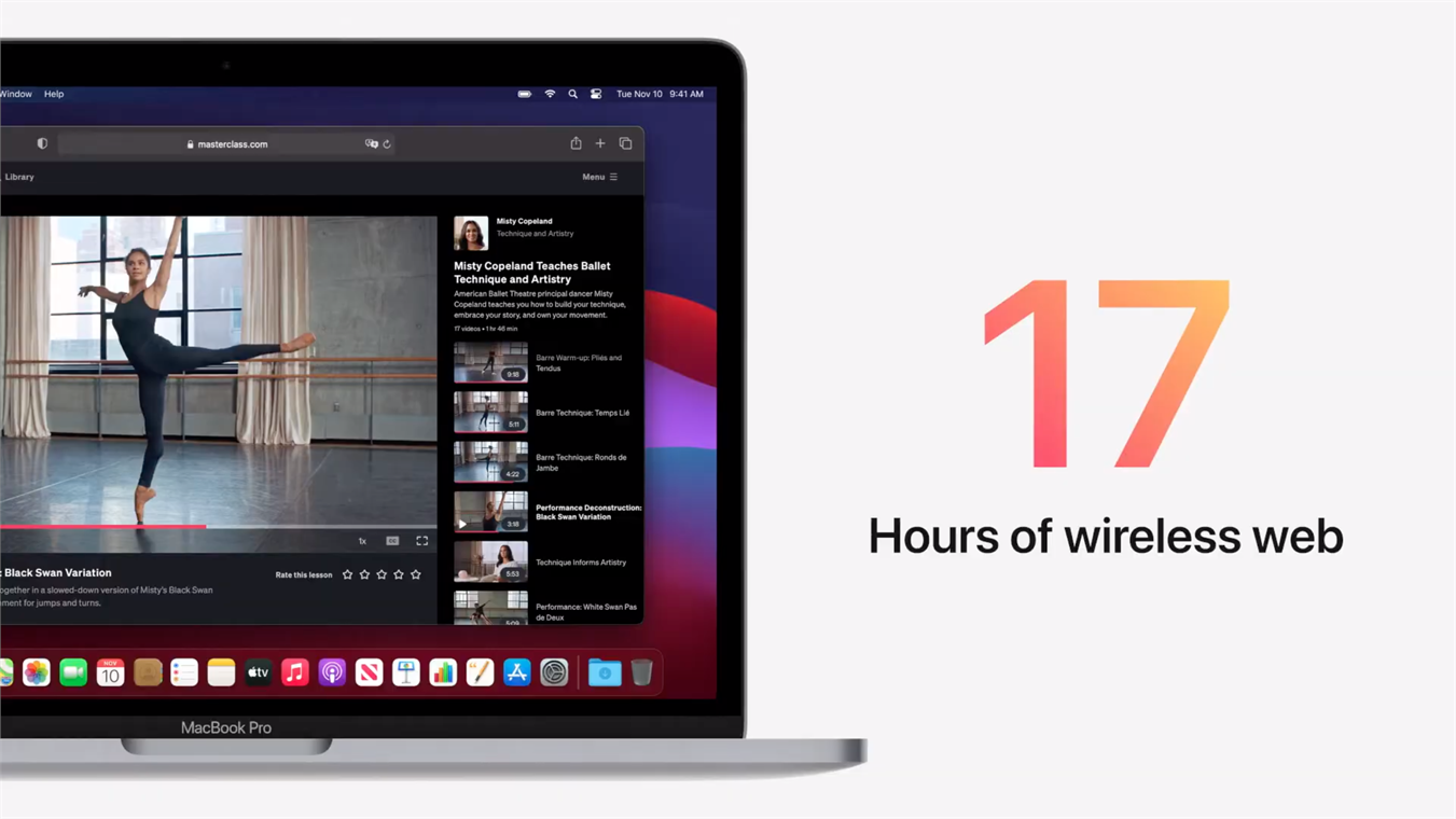 Thời lượng pin cực khủng Đặc biệt, điểm đáng nói nhất chính là thời lượng pin ấn tượng của MacBook Pro 13-inch với vi xử lý mới. Theo số liệu được Apple công bố, MacBook Pro 13-inch chạy Apple M1 cho thời gian lướt web lên tới 17 tiếng, còn xem video là 20 tiếng. Hãng khẳng định, đây là chiếc MacBook với thời lượng pin tốt nhất từ trước đến nay. Bên cạnh vi xử lý mới, Apple cũng đem đến một vài nâng cấp nhỏ cho MacBook Pro 13-inch mới như cải thiện micro và chất lượng webcam, hỗ trợ Thunderbolt/USB 4, kèm theo bảo mật dấu vân tay/dữ liệu/mật khẩu… tốt hơn qua việc tích hợp Secure Enclave.