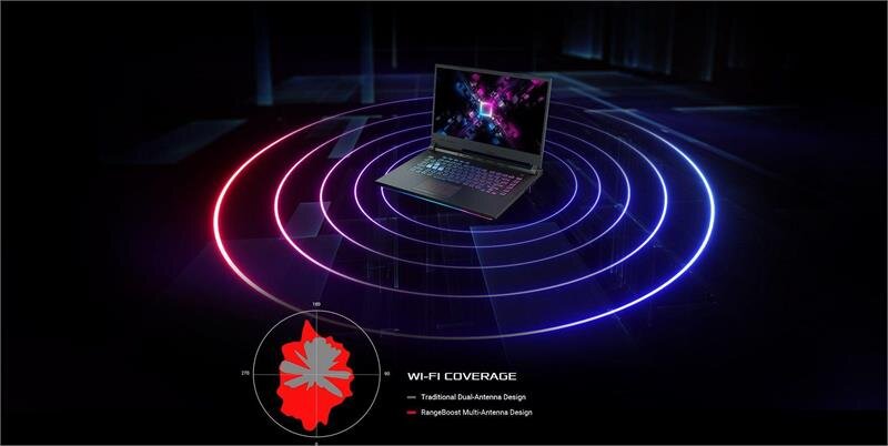 Trang bị Wi-Fi Rangeboost cho tầm thu sóng tăng lên 30% đồng thời tích hợp công nghệ ROG RangeBoost đã được cấp bằng sáng chế kết hợp bốn ăng-ten nằm ở mặt trước và sau máy. Chuẩn Wi-Fi 802.11ac Wave 2 cho tốc độ lên đến 1.7Gbps – gấp 2 lần 802.11ac 2×2 và 12 lần 802.11b/g/n