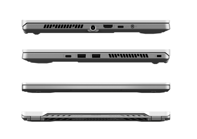 ROG Zephyrus G14 và G15 được trang bị đầy đủ các cổng kết nối cần thiết: 2 cổng USB 3.2 Gen 2 , cổng HDMI 2.0, giắc âm thanh và khe khóa Kensington. G14 có 2 cổng USB 3.2 Gen 1 loại A so với ba cổng của G15.