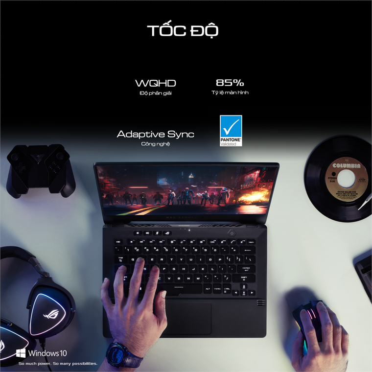 Với màn hình WQHD tận hưởng lối chơi mượt mà hơn trên tùy chọn màn hình 120Hz siêu tốc. Công nghệ Adaptive Sync đồng bộ hóa tần số quét màn hình với tốc độ khung hình của GPU để loại bỏ hiện tượng xé hình. Xác thực Pantone đảm bảo rằng màu sắc chính xác 100% trên phổ sRGB. Các viền siêu mỏng xung quanh màn hình đem đến tỉ lệ màn hình lớn lên đến 85% so với thân máy mang đến trải nghiệm hình ảnh giải trí đắm chìm hơn.