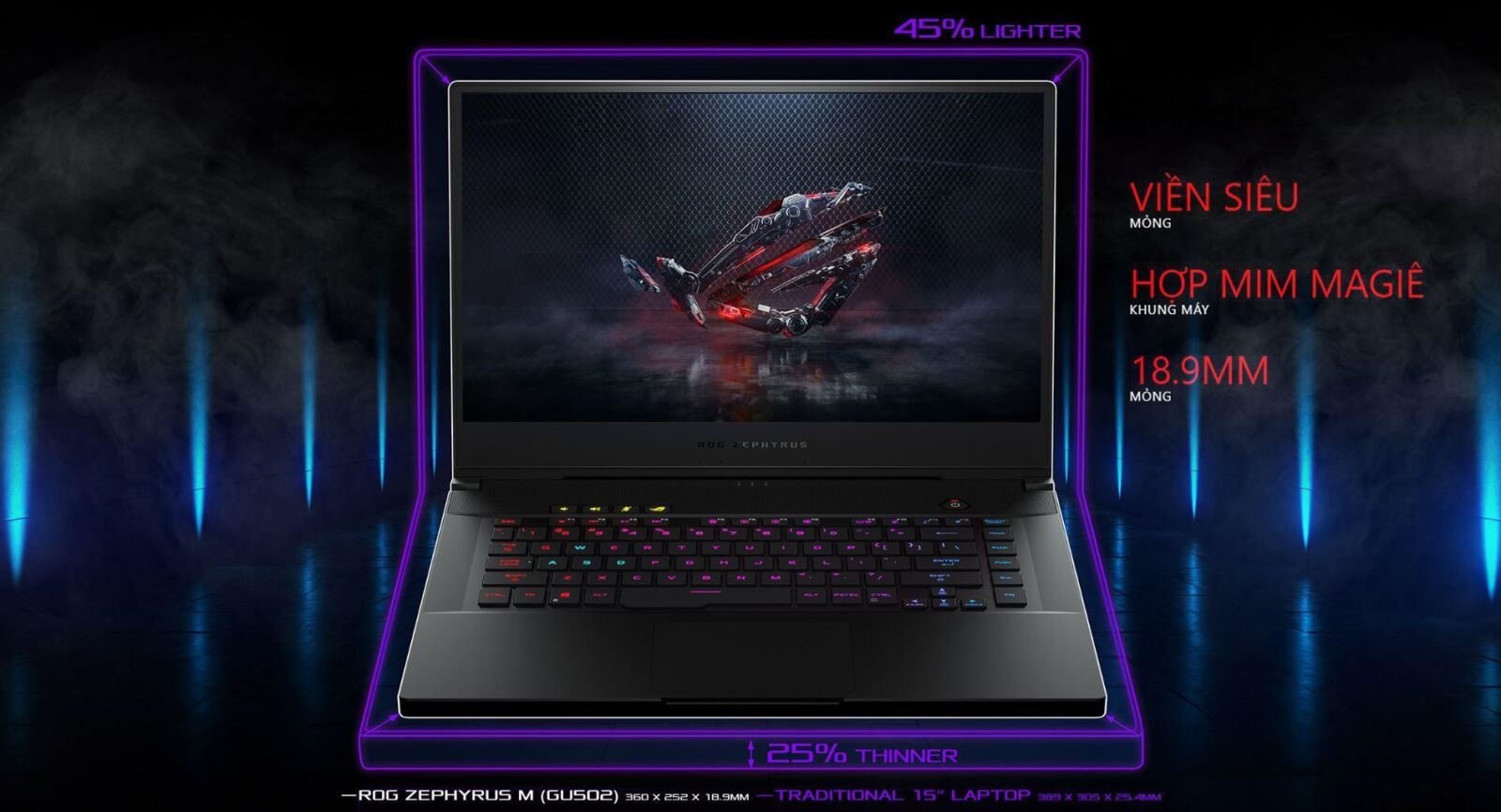 Kích thước và cân nặng ấn tượng tuyệt đối với độ mỏng 18,9mm và dưới 1.9kg. Zephyrus M GU502GU-AZ090T mỏng hơn 25% và nhẹ hơn 45% so với laptop 15″ thông thường. Zephyrus M GU502GU-AZ090T hoàn toàn có thể cân bằng giữa công việc và giải trí. Khung kim loại được gia cố tốt hơn, vẻ ngoài bóng bẩy chắc chắn giúp gia tăng tuổi thọ. Bên trong được thiết kế tinh tế nhỏ gọn làm cho người sử dụng có sự trải nghiệm chuyên nghiệp ở bất cứ đâu.