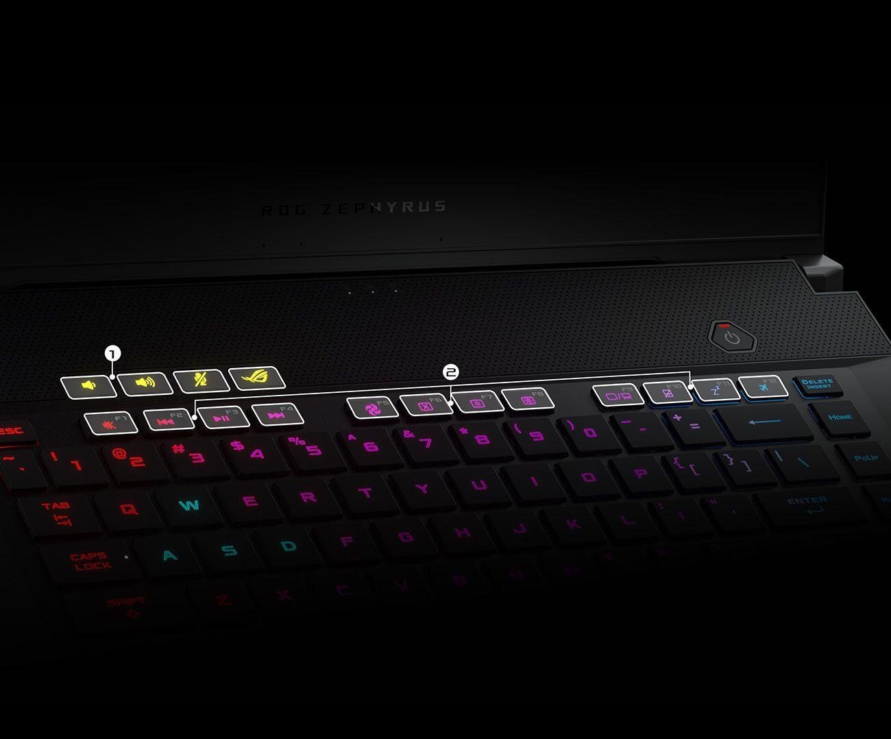 Được thiết kế để thao tác chính xác, bàn phím có khoả ng cách giữa các phím chức năng để nhận dạng trực quan. Các phím nóng chuyên dụng để giữ các lệnh quan trọng trong tầm với của bạn. Per-key RGB mỗi phím một màu làm nổi bật các phím quan trọng cho các trò chơi khác nhau và các tùy chỉnh dành riêng cho công việc giúp tiết kiệm thời gian, Aura Sync cho phép bạn phối hợp màu sắc và hình ảnh trên các thiết bị tương thích để biến môi trường chơi game thành của riêng bạn.