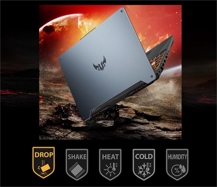 Để xứng đáng với tên gọi là TUF Gaming, chiếc này phải vượt qua hàng loạt bài test về độ bền quân đội MIL-STD-810H về độ rung lắc, thả rơi, hoạt động ở nhiệt độ khắc nghiệt, độ ẩm cao, đảm bảo chịu đựng được các va đập trong cuộc sống hàng ngày, hoặc do vận chuyển để sử dụng.