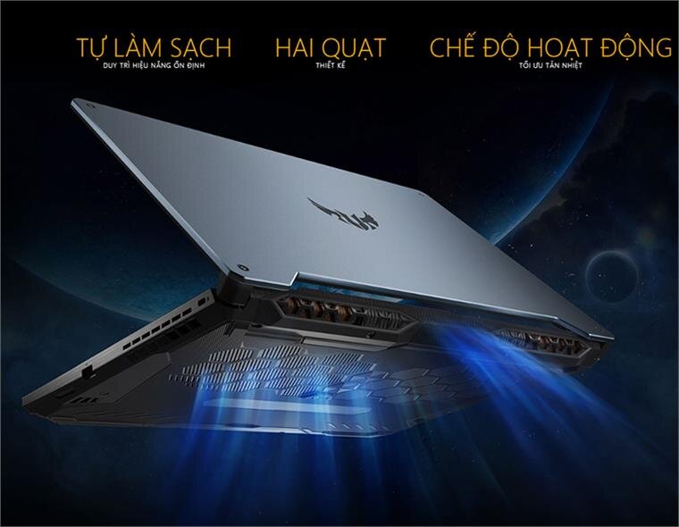 Với hệ thống tản nhiệt được trang bị, đảm bảo Asus TUF Gaming A15 FA506IU-AL127T có được hoạt động ổn định và lâu dài. Thiết kế 2 quạt, nhiều ống tản nhiệt và 3 ống dẫn nhiệt, giúp đưa nhiệt thoát nhanh chóng ra bên ngoài khi người dùng làm việc với các ứng dụng năng hay chơi game online ở tốc độ cao. Thiết kế tự làm sạch đảm bảo hệ thống luôn duy trì một hiệu năng ổn định và hoạt động cân bằng, giảm thiểu tiếng ồn một cách hiệu quả.