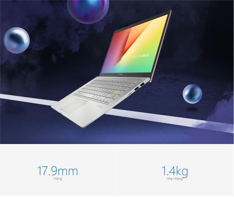 Với tổng trọng lượng chỉ 1.4 kg và siêu mỏng, VivoBook 14 có thể nằm gọn gàng trong túi xách để bạn dễ dàng mang theo trên mọi hành trình.