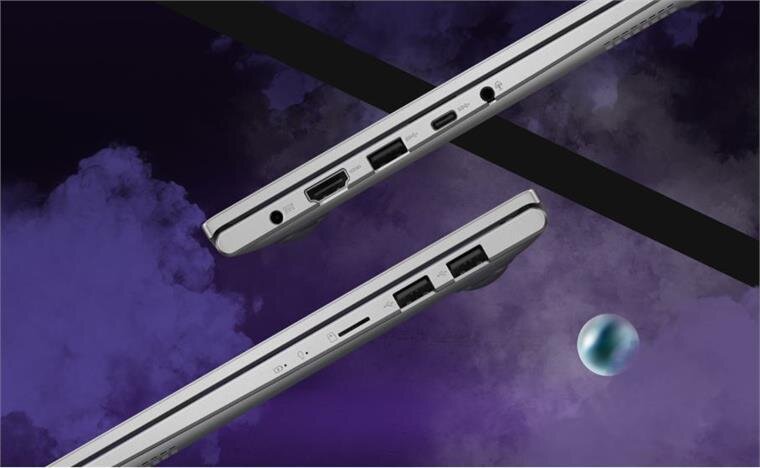 VivoBook 14 được trang bị cổng USB 3.2 Gen 1 Type-C™ đảo chiều cho việc kết nối các thiết bị dễ dàng hơn. Máy cũng có cổng USB 3.2 Gen 1, USB 2.0, HDMI và khe đọc thẻ microSD – để việc kết nối với các thiết bị ngoại vi, màn hình, máy chiếu thuận tiện hơn.