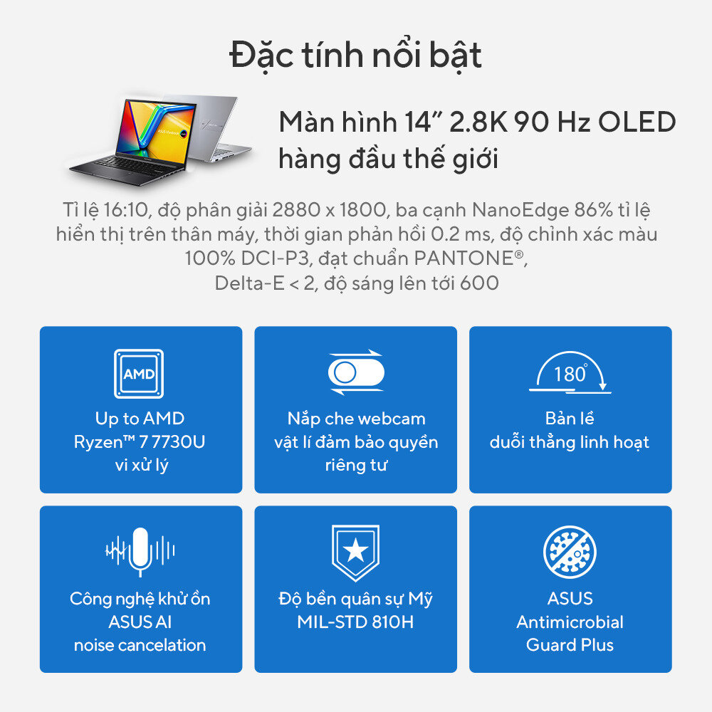 Asus Vivobook 14 OLED A1405ZA-KM264W - Máy văn phòng cấu hình cao, màn 2.8K tuyệt đẹp!