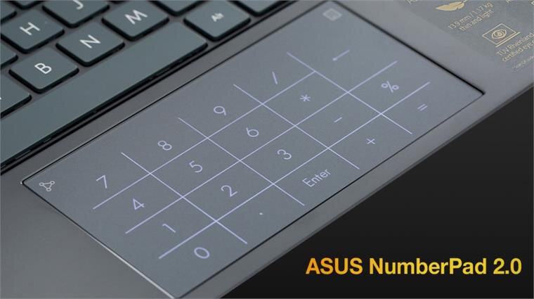 Đột phá hơn cùng công nghệ NumberPad 2.0, bàn di chuột sở hữu chức năng kép với vùng số ảo được chiếu sáng bằng đèn LED tích hợp, tiện lợi cho người dùng trong việc vừa nhập các dữ liệu số vừa điều khiển con trỏ, đẩy nhanh hiệu năng công việc.