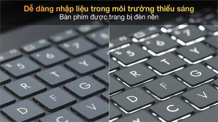 Bàn phím được trang bị đèn nền với thiết kế tràn viền mới cùng các phím chức năng ở hàng trên và bên phải giúp người dùng thuận tiện thực hiện các thao tác nhanh như chụp màn hình, mở ứng dụng MyAsus,...