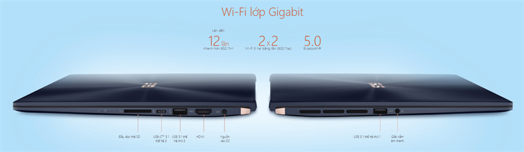 KHẢ NĂNG KẾT NỐI ZenBook UX534FTC-AA189T trang bị đầy đủ các cổng kết nối I/O hiệu năng cao mang đến khả năng kết nối dễ dàng. Wi-Fi lớp gigabit tích hợp, bạn có thể tận hưởng tốc độ tải xuống siêu nhanh và trải nghiệm truyền phát mượt mà với tầm phủ sóng rộng hơn và kết nối mạng ổn định hơn bao giờ hết.