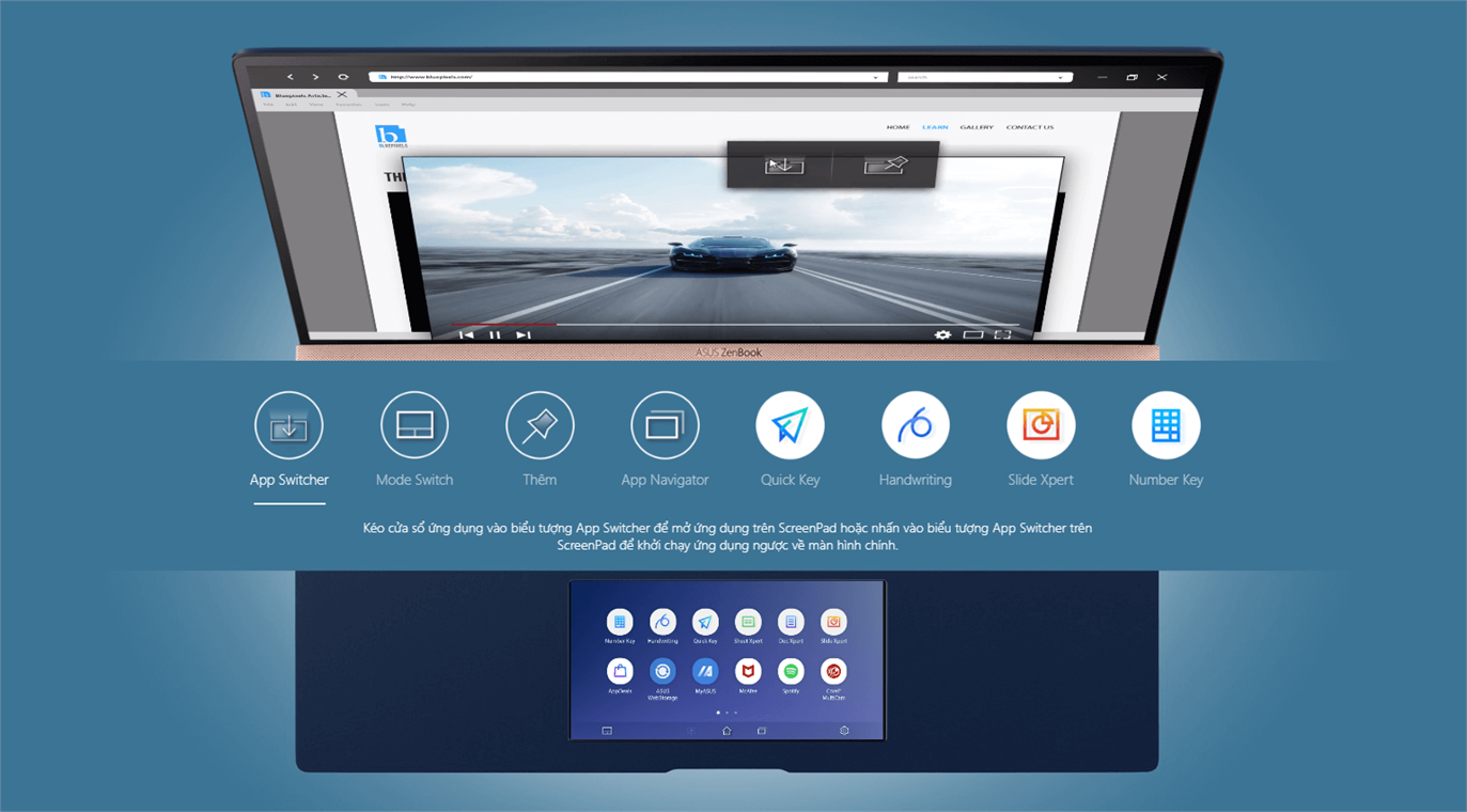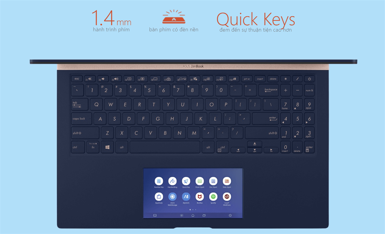 SCREENPAD™ 2.0 Thêm màn hình cảm ứng thứ cấp tương tác giúp nâng cao năng suất. Với giao diện giống như điện thoại thông dễ dàng quản lý các tác vụ và tạo quy trình làm việc đa nhiệm liền mạch. Quick Key - để tự động hóa một chạm của các chuỗi bàn phím phức tạp - cùng với Chữ viết tay, Phím số và Office Xpert. Ngoài ra còn có các điều khiển nhanh hữu ích giúp cải thiện sự tương tác giữa màn hình chính và ScreenPad ScreenPad™ 2.0 hiển thị một cách thông minh nhiều ứng dụng vào màn hình cảm ứng 5.65 inch và bạn có thể thêm ứng dụng vào ScreenPad để truy cập tức thời một cách dễ dàng. Trải nghiệm ScreenPad được tối ưu hóa bảo đảm rằng các ứng dụng ưa thích của bạn