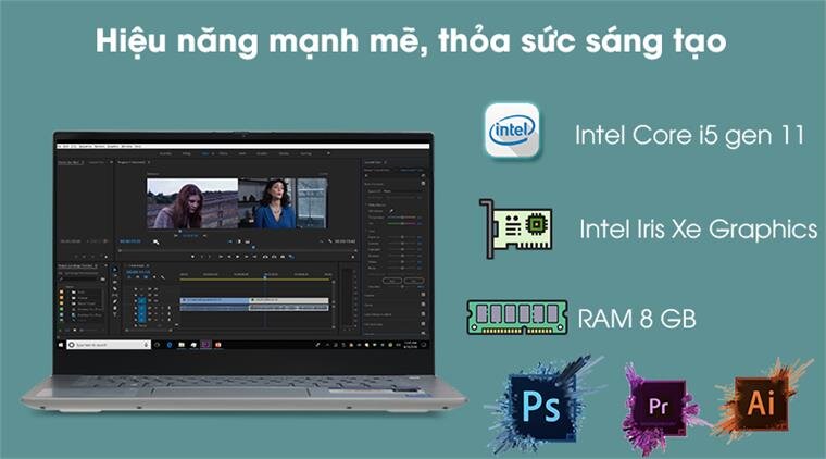 Không chỉ sở hữu cấu hình mạnh mẽ, Dell Inspiron 5406 i5 (70232602) còn là một chiếc máy tính có khả năng xoay 360 độ và màn hình cảm ứng, giúp bạn có thể làm việc năng động, sáng tạo, linh hoạt hơn.  Hiệu năng mạnh mẽ, đầy chuyên nghiệp Sở hữu con chip Intel Core i5 Tiger Lake 1135G7 thuộc dòng CPU thế hệ thứ 11 được Intel ra mắt vào quý 3 năm 2020, laptop sẽ mang lại cho bạn một hiệu suất đồ họa cao, cải thiện tuổi thọ pin đáng kể. Con chip sẽ giúp bạn chạy mượt mọi tác vụ văn phòng và cả những tác vụ nặng hơn như chỉnh sửa ảnh, biên tập video vì được sản xuất trên tiến trình 10 nm tiên tiến, với 4 nhân 8 luồng  cho xung nhịp cơ sở là 2.4 GHz và được ép tối đa tới 4.2 GHz nhờ Turbo Boost. Ngoài ra RAM 8 GB giúp bạn làm việc với hiệu suất cao hơn vì tốc độ mở các tập tin lớn nhanh chóng, mở được nhiều ứng dụng cùng lúc và thực hiện các tác vụ văn phòng, thiết kế Photoshop cực kỳ ổn định và mượt mà.