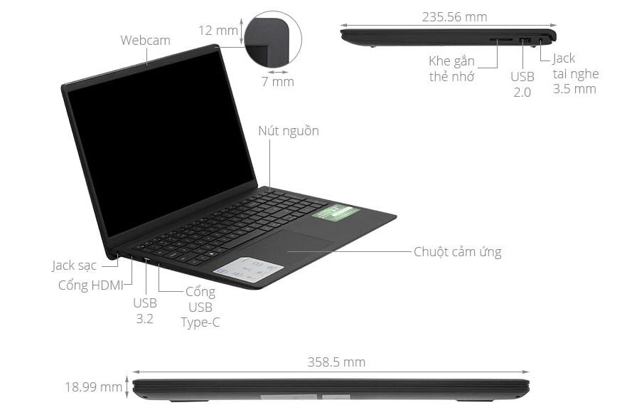 Thông số kĩ thuật Laptop Dell Inspiron 3530 N5I7240W1 - Intel Core i7 1355U, RAM 16GB, SSD 512GB, Intel Iris Xe Graphics, 15.6 inch