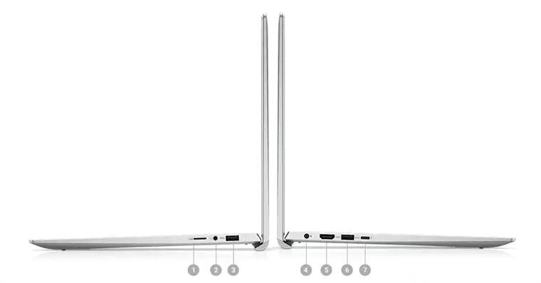 1. Đầu đọc thẻ nhớ Micro SD | 2. Giắc cắm tai nghe & micrô | 3. USB 3.2 Thế hệ 1 Loại A | 4. Nguồn | 5. HDMI 2.0 | 6. USB 3.2 Thế hệ 1 Loại A | 7. Thunderbolt ™ 4 Type-C ™