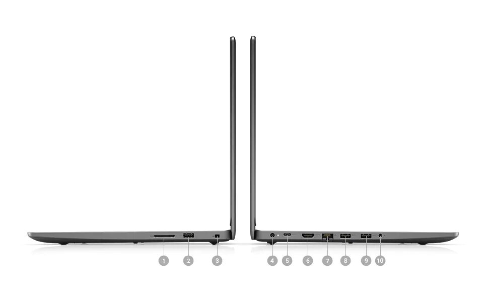 1. Đầu đọc thẻ nhớ đa phương tiện SD 3 trong 1 | 2. USB 2.0 | 3. Khe khóa hình nêm | 4. Điện vào | 5. USB 3.2 Gen 1 Type-C | 6. HDMI 1.4 | 7. Ethernet RJ-45 | 8. USB 3.2 Thế hệ 1 Loại A | 9. USB 3.2 Thế hệ 1 Loại A | 10. Jack tai nghe.