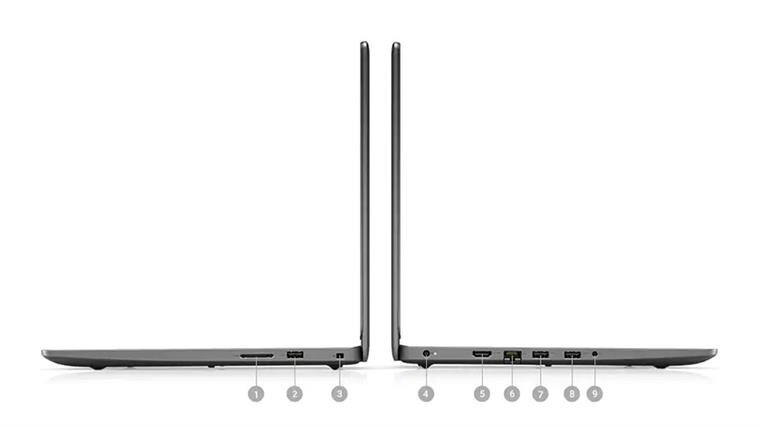 Trải nghiệm không dây liền mạch Dell Mobile Connect là giải pháp đồng bộ không dây tiện lợi giữa Dell Vostro 3400 và smartphone Android hoặc iOS của bạn. Bạn có thể nhận thông báo, cuộc gọi, tin nhắn ngay trên chiếc laptop của mình mà không cần phải nhìn vào điện thoại. Hơn thế nữa, tính năng phản chiếu hình ảnh cho phép bạn chuyển mọi ảnh, video hay những ứng dụng khác từ màn hình smartphone lên màn hình lớn của laptop. Đầy đủ mọi cổng kết nối Dù có thiết kế rất mỏng nhưng Dell Vostro 3400 vẫn mang trên mình đầy đủ cổng kết nối phổ biến thông dụng, để bạn dễ dàng kết nối với những thiết bị ngoại vi. Laptop có đầu đọc thẻ nhớ đa năng; 1 cổng USB 2.0; 2 cổng USB 3.2; giắc cắm 3.5mm âm thanh/mic; cổng HDMI 1.4; khe khóa và cả cổng mạng Ethernet RJ-45. Với rất nhiều cổng kết nối, công việc của bạn sẽ diễn ra thuận lợi hơn khi cắm thêm các thiết bị bổ trợ cần thiết.