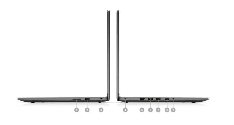 Dell Vostro 3400 (V4I7015W) được trang bị những chuẩn kết nối thông dụng có mặt hầu hết trên các laptop hiện nay 1. 3-in-1 SD Media Card | 2. USB 2.0 | 3. Wedge-Shaped Lock Slot | 4. Power In | 5. USB 3.2 Gen 1 Type-C™ (Data only)* | 6. HDMI 1.4 | 7. Ethernet RJ-45 | 8. USB 3.2 Gen 1 | 9. USB 3.2 Gen 1 | 10. Headset Jack Điều này giúp tăng sự lựa chọn cho bạn với nhiều nhu cầu kết nối khác nhau và cho phép kết nối máy với nhiều thiết bị ngoại vi dễ dàng hơn. Hỗ trợ kết nối Wifi cho phép bạn truy cập Internet nhanh chóng, phục vụ đắc lực cho công việc, học tập của bạn.