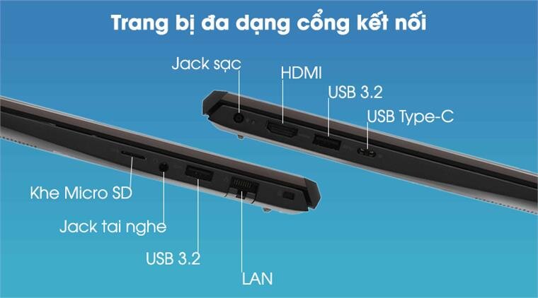 Những cổng kết nối cần thiết cho việc học để trình chiếu hay trong công việc văn phòng để in giấy tờ thì máy vẫn hỗ trợ đầy đủ, ví dụ như USB 3.2, HDMI, LAN (RJ45), USB Type-C,... và các kết nối không dây tiện lợi Bluetooth v5.0, Wi-Fi 6 cho tốc độ truyền dữ liệu nhanh chóng.