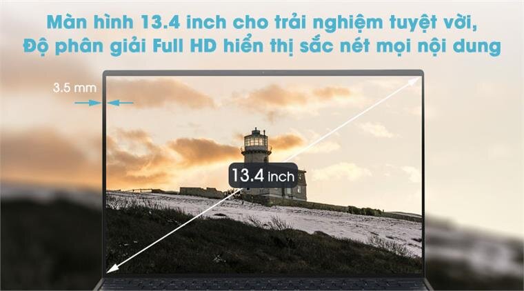 Màn hình đẹp sắc nét, chân thực Với kích thước 13.4 inch, bạn sẽ được nâng tầm trải nghiệm bởi độ phân giải Full HD vô cùng sắc nét, giúp bạn làm việc tốt ở mọi môi trường. Vì thế, bạn có thể làm việc hiệu quả hơn, giải trí với các tác vụ xem phim, chơi game hấp dẫn hơn trên một màn hình chất lượng như chiếc laptop này.
