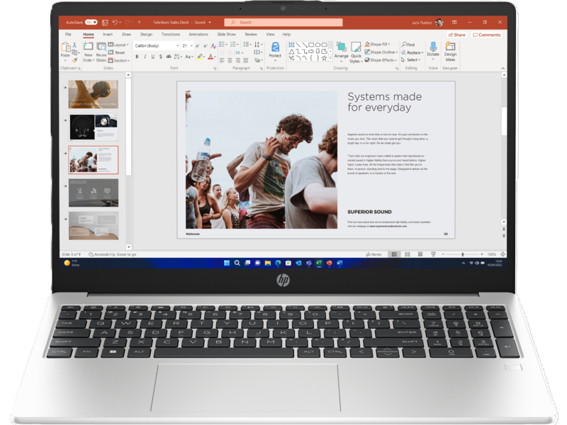 HP 250 G10 A06FDPT được trang bị màn hình 15.6 inch FHD (1920 x 1080) IPS với công nghệ chống chói, độ sáng 250 nits và dải màu 45% NTSC. Nhờ đó, hình ảnh hiển thị sắc nét trong môi trường trong nhà, nhưng có thể hơi mờ khi sử dụng ngoài trời.