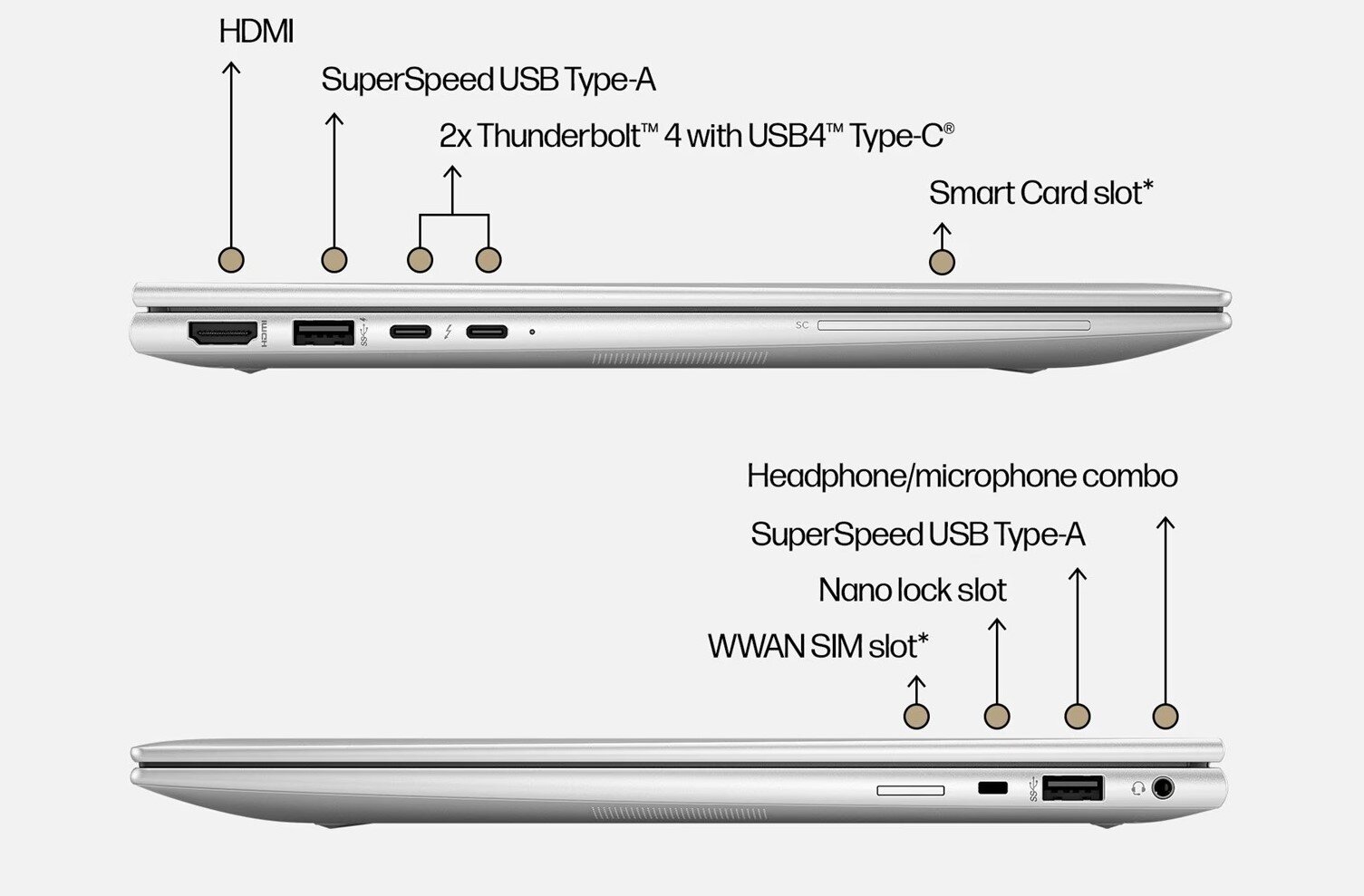 Hệ thống cổng kết nối hiện đại Dù có thiết kế mỏng nhẹ, HP vẫn trang bị đầy đủ các cổng kết nối cần thiết, bao gồm: