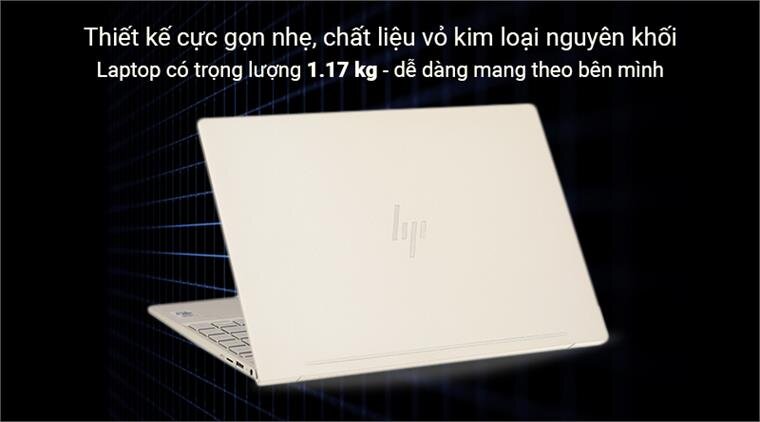 Thiết kế siêu mỏng nhẹ  Được hoàn thiện từ vỏ kim loại nguyên khối phủ sơn vàng óng, HP Envy 13 có ngoại hình sang trọng và cực kì thu hút. Laptop được thiết kế siêu mỏng nhẹ chỉ xấp xỉ một vài quyển sách, trọng lượng chỉ 1.17 kg và độ dày 14.7 mm cho bạn dễ dàng cho vào balo đem theo bên mình.