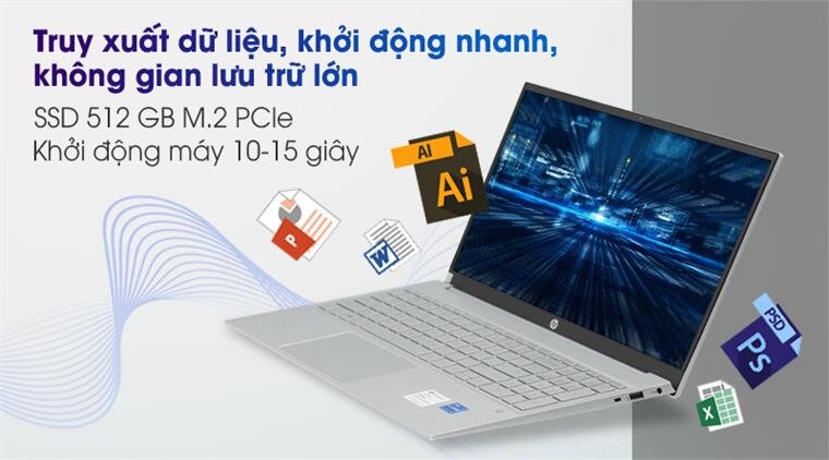 Đặc biệt, laptop còn có sẵn ổ cứng SSD 512 GB cho tốc độ khởi động, mở ứng dụng chỉ mất vài giây. Bên cạnh đó, không gian lưu trữ cũng đủ rộng để sử dụng đối với nhu cầu văn phòng thông thường.