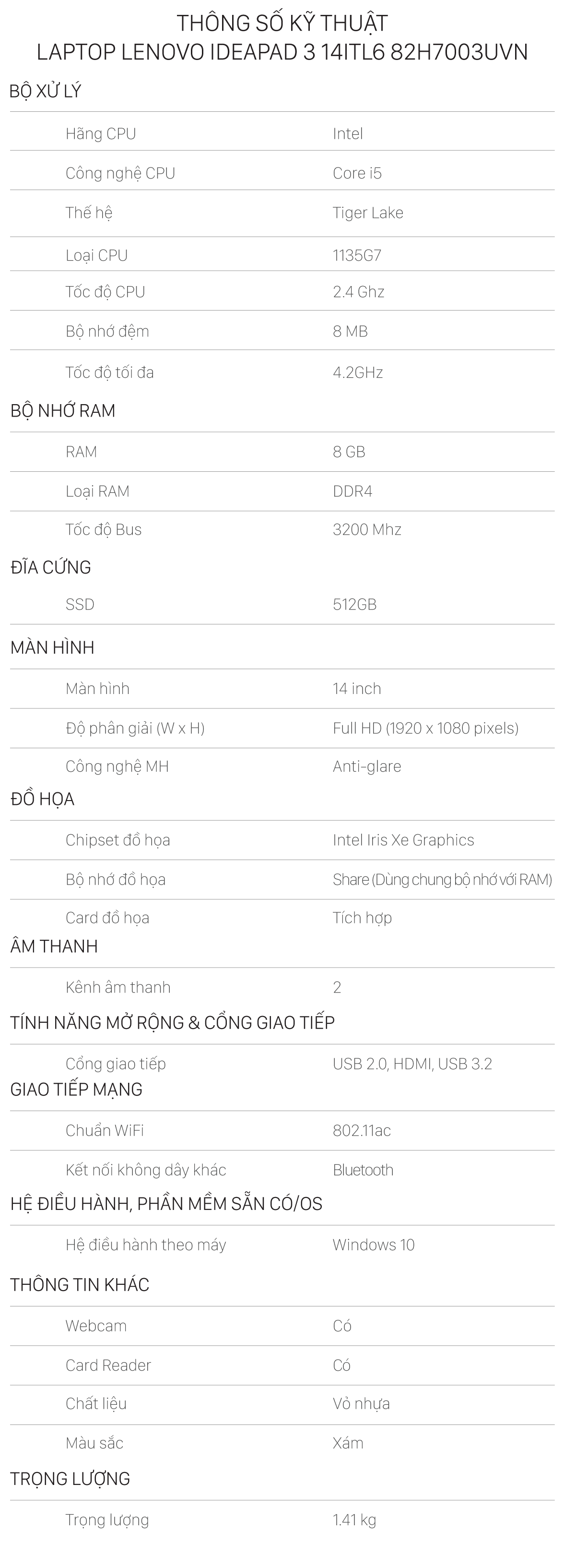 Giới thiệu: Laptop Lenovo IdeaPad 3 14ITL6 82H7003UVN
