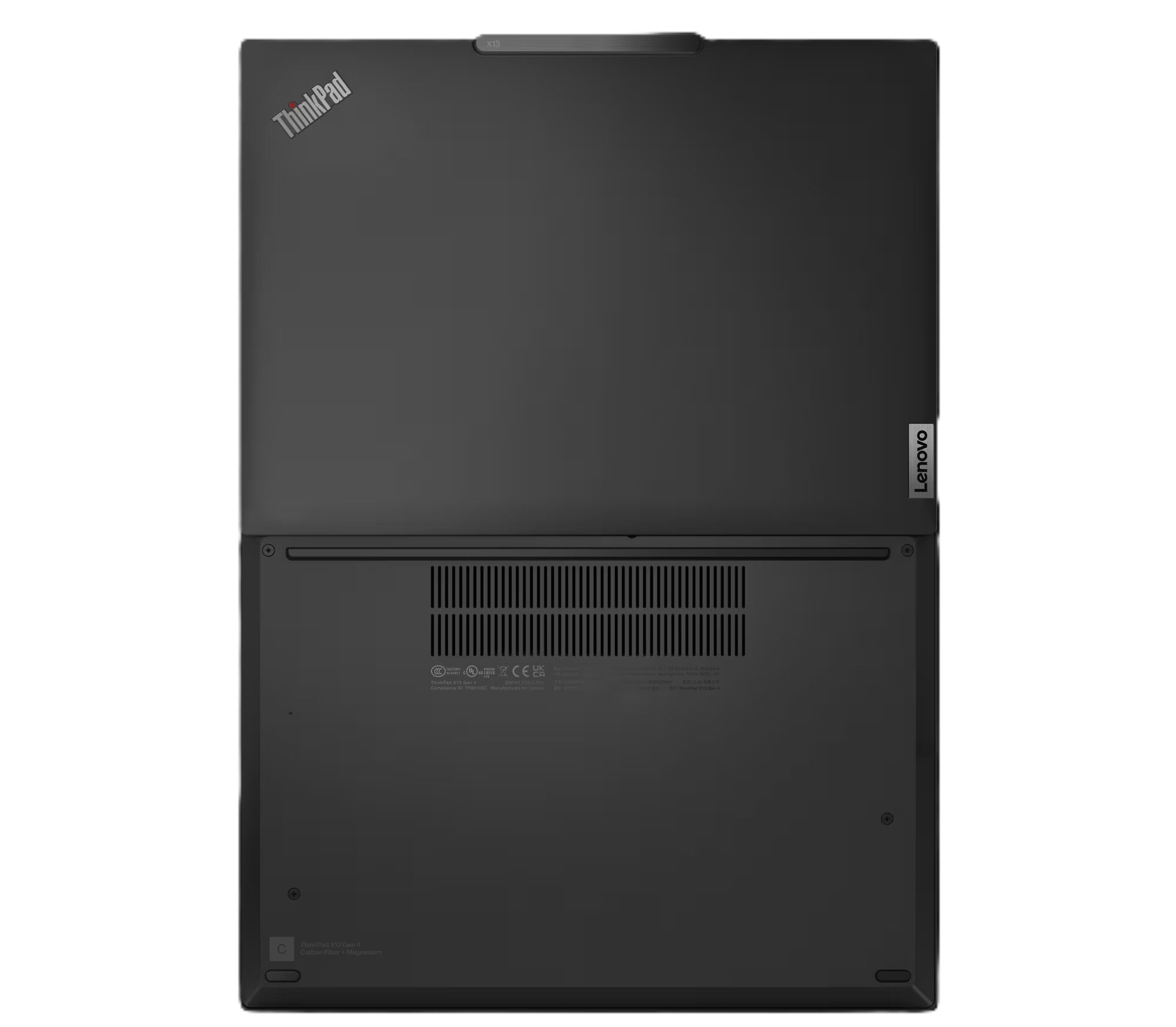 giữ nguyên nét thiết kế đặc trưng của dòng ThinkPad với các đường nét vuông vắn, cứng cáp, đi kèm màu đen tuyền sang trọng. Khung máy được gia công từ hợp kim Carbon Fiber cao cấp, giúp sản phẩm vừa bền bỉ vừa nhẹ, chỉ nặng 1.09 kg và mỏng 15.95 mm, rất phù hợp để mang theo trong các chuyến công tác hoặc di chuyển thường xuyên.