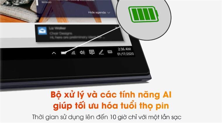 Lenovo Yoga Duet 7 có thời lượng pin lên tới hơn 10 tiếng, đủ để bạn thoải mái làm việc cả ngày dài mà không bị gián đoạn. Ngoài ra cũng trang bị USB-C hỗ trợ sạc nhanh cho chiếc laptop này, đảm bảo hiệu suất hoạt động tốt nhất cho bạn.