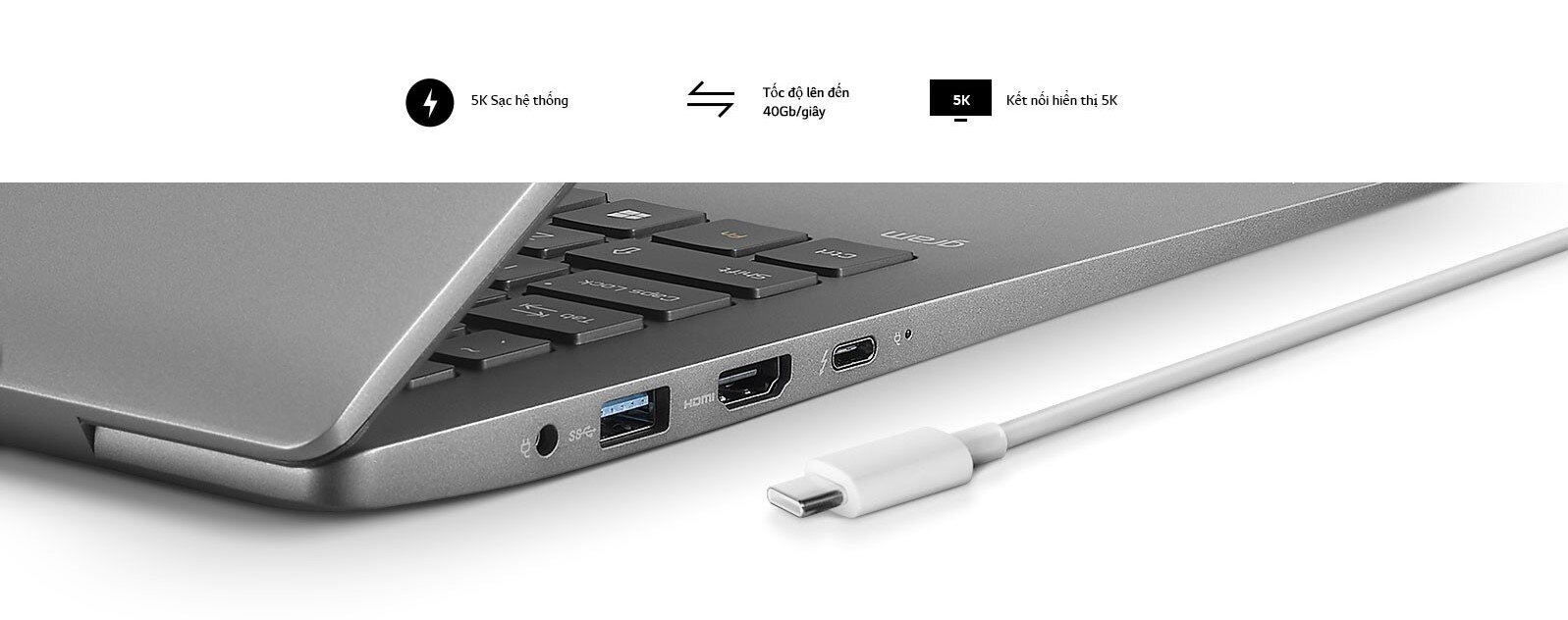 Thunderbolt™ 3 Sạc pin, truyền dữ liệu và hiển thị với một cổng Cổng Thunderbolt™ cho phép hiển thị lên đến 5k, truyền dữ liệu với băng thông có tốc độ lên đến 40Gb/giây và sạc pin cho thiết bị kết nối mà không cần cáp nguồn riêng, tất cả cùng đồng thời trên một dây cáp duy nhất.
