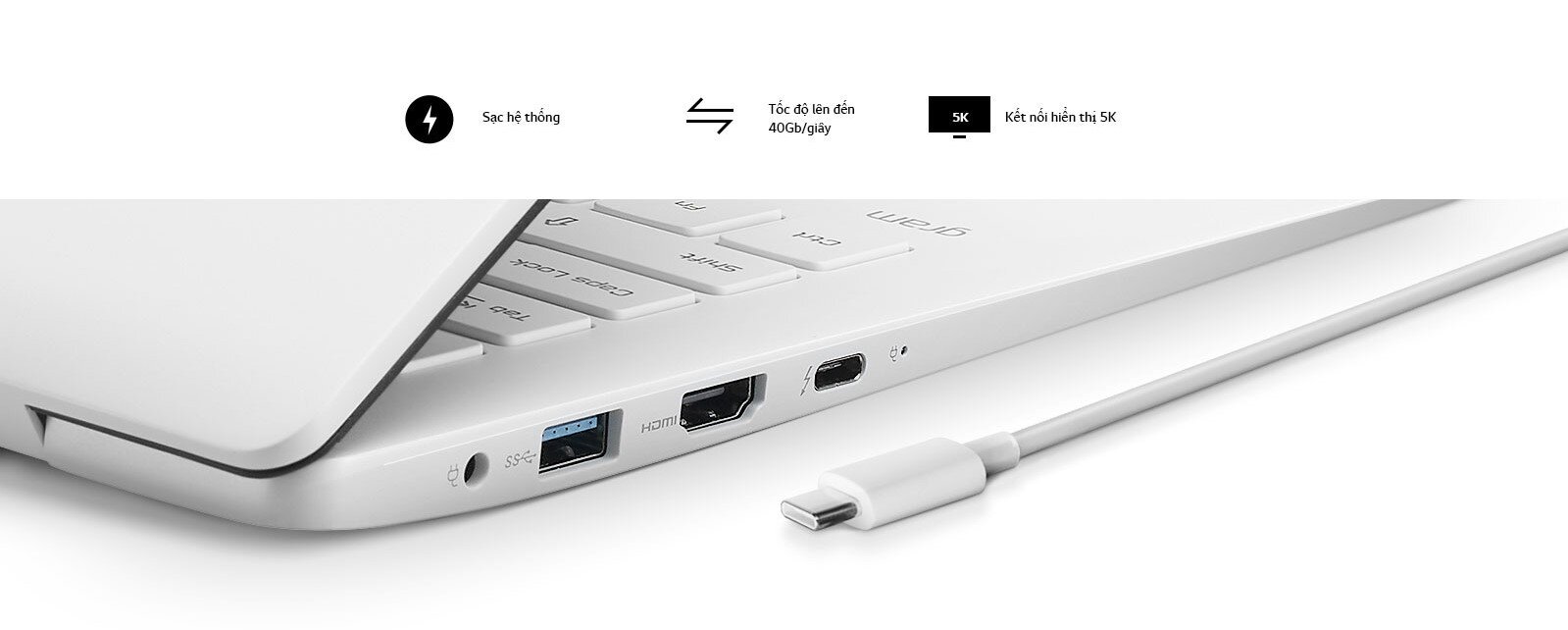Thunderbolt™ 3 Sạc pin, truyền dữ liệu và hiển thị với một cổng Cổng Thunderbolt™ cho phép hiển thị lên đến 5k, truyền dữ liệu với băng thông có tốc độ lên đến 40Gb/giây và sạc pin cho thiết bị kết nối mà không cần cáp nguồn riêng, tất cả cùng đồng thời trên một dây cáp duy nhất.