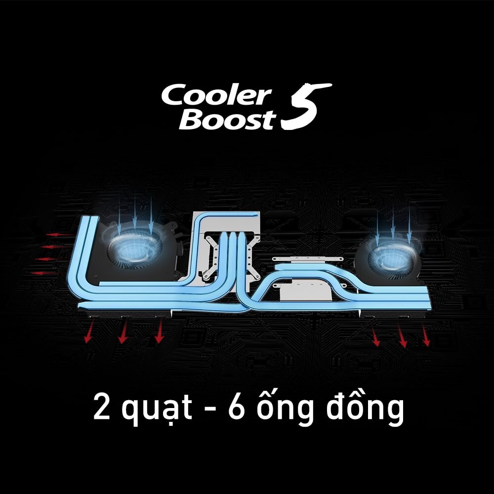 Cụm tản nhiệt riêng cho cả CPU và GPU với 6 ống dẫn nhiệt, kết hợp lại để dẫn hơi nóng ra ngoài hiệu quả, tối ưu hóa luồng gió để chơi game siêu mượt trên một chiếc laptop cực mỏng.