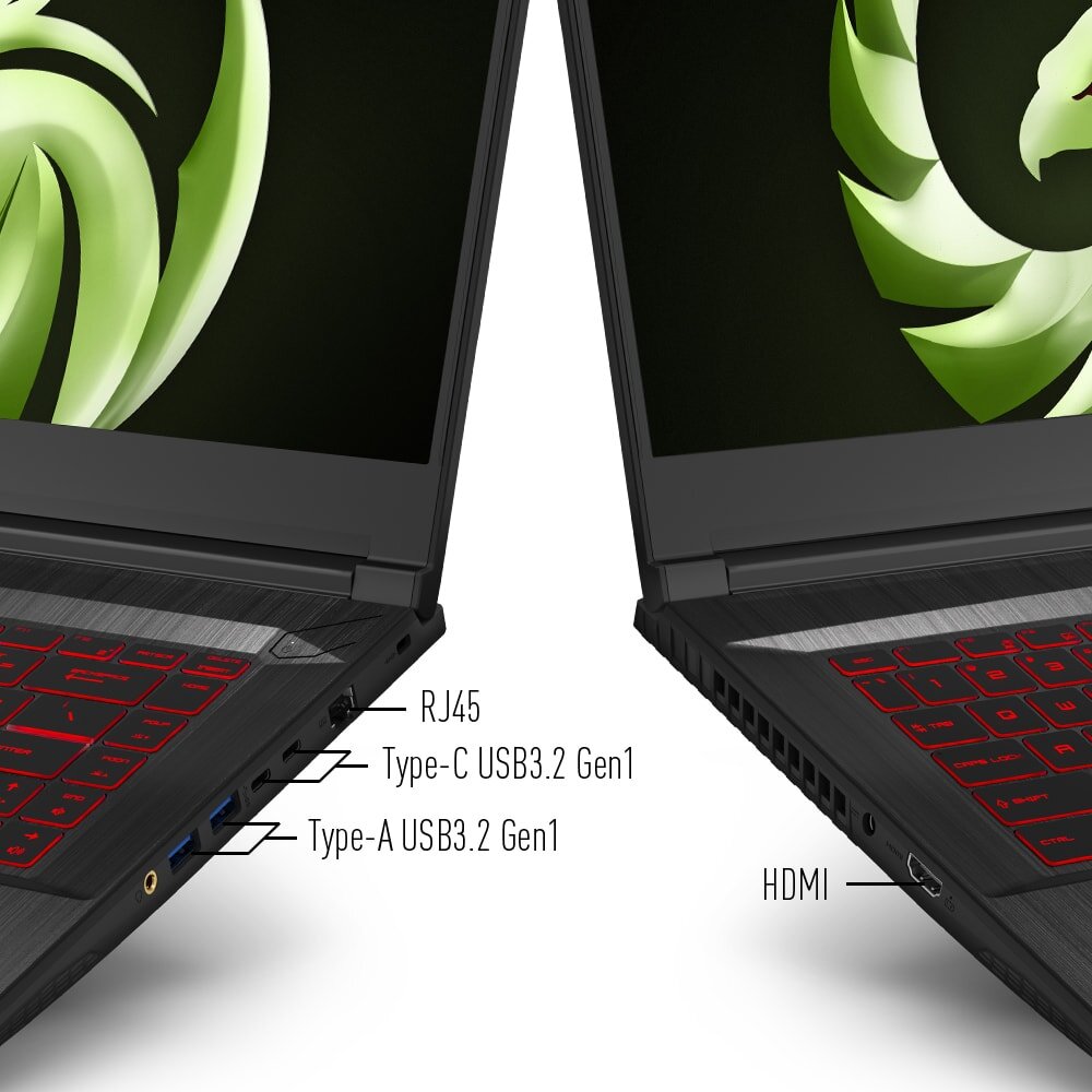 Bravo 15 có một cổng LAN RJ45, hai cổng Type-C USB 3.2 Gen 1, hai cổng Type-A USB 3.2 Gen 1 và một cổng HDMI, giúp kết nối cực kì dễ dàng.