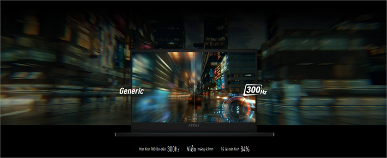 MÀN HÌNH (LCD) Bạn hoàn toàn có thể mở rộng tầm nhìn của mình trên nhiều màn hình với MSI GS66 11UG nhờ vào HDMI và Thunderbolt 3 hoặc tận hưởng đầu ra độ phân giải lên đến 8K qua Thunderbolt 3 để có thêm năng suất và niềm vui. Màn hình 15.6inch của máy có tốc độ làm mới 300Hz cực nhanh, nhanh gấp 5 lần so với máy tính xách tay thông thường để người dùng có thể chơi game tốc độ nhanh như đua xe mà không bỏ lỡ một giây nào. Những hình ảnh vô cùng sống động, sắc nét sẽ được hiển thị nhờ màn hình  , viền mỏng, chống chói của máy. Bạn có thể tận hưởng chúng ở bất kì môi trường ánh sáng nào nhờ khả năng chống chói tuyệt đối và màu sắc rực rỡ.