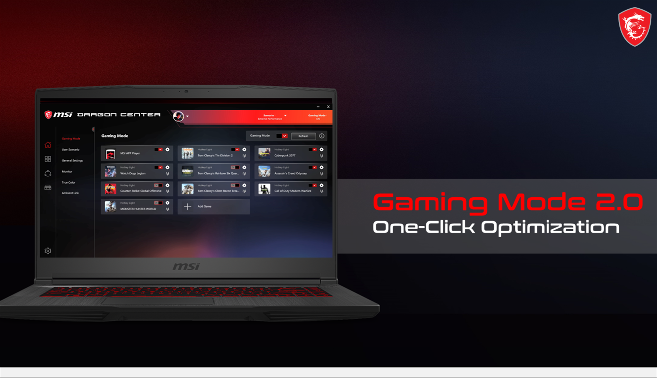 Với 1cú click chuột, Gaming Mode sẽ tối ưu mọi yếu tố cần thiết để bạn chơi game tốt nhất