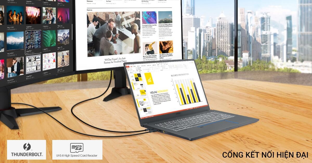 Ở mặt bên phải cũng có đến 2 USB 3.2 gen 2 Type A và khe cắ micro SD, giúp truyền dữ liệu nhanh chóng hơn cho người dùng thực hiện các công việc sáng tạo.