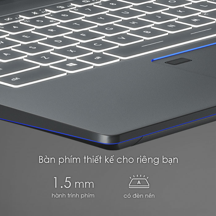 Bàn phím thiết kế riêng cho bạn Một chiếc bàn phím có thiết kế công thái học và hành trình phím tối ưu sẽ đem tới trải nghiệm gõ tuyệt vời hơn hẳn. Đèn nền phím giúp sử dụng thuận tiện bất kể vào ban ngày hay ban đêm.