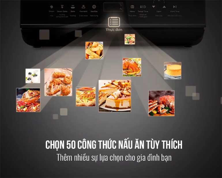 Với hơn 50 chế độ đa dạng, sản phẩm đảm bảo sẽ giúp bạn vừa thỏa sức nấu nướng một cách linh hoạt và sáng tạo vừa có thể thay đổi thực đơn mỗi ngày mà không nhàm chán. Các chế độ này đều được cài đặt sẵn mức nhiệt và thời gian nấu tối ưu cho từng món ăn. Thực đơn đa dạng đó sẽ giúp bạn trở thành đầu bếp ngay lập tức.