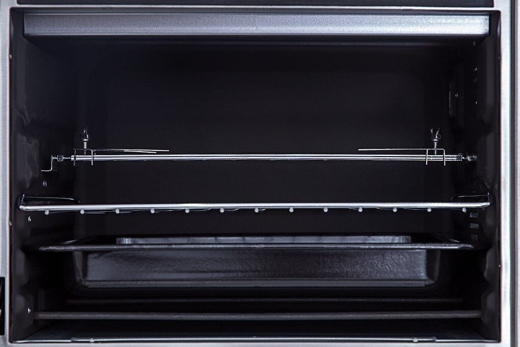 Xiên quay cho phép người nội trợ nướng gà, vịt nguyên con từ 1 kg trở xuống ,xoay tròn giúp thực phẩm có kích cỡ lớn chín ngon, không gặp tình trạng nửa sống nửa chín. Quạt đối lưu tạo luồng gió luân chuyển nhiệt lượng khắp trong lò giúp nướng thực phẩm chín đều, ngon, không bị cháy khét.