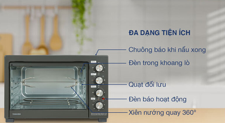 Ngoài ra, Toshiba TL-MC40EZF(GR) còn có đến 6 chế độ như Nướng thanh nhiệt dưới, Nướng thanh nhiệt trên, Nướng kết hợp giữa 2 thanh nhiệt và Nướng kết hợp 2 thanh nhiệt, có quạt đối lưu, Nướng thanh nhiệt trên, có nướng xiên quay, Lên men sữa chua. Tất cả đều được tích hợp trên nút xoay điều khiển.