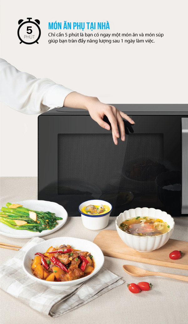 Công suất vi sóng 900W Công suất vi sóng 900W giúp rã đông, hâm nóng, nấu thức ăn nhanh hơn, tiết kiệm được nhiều thời gian. Thực phẩm nhanh chín và thơm ngon hơn.