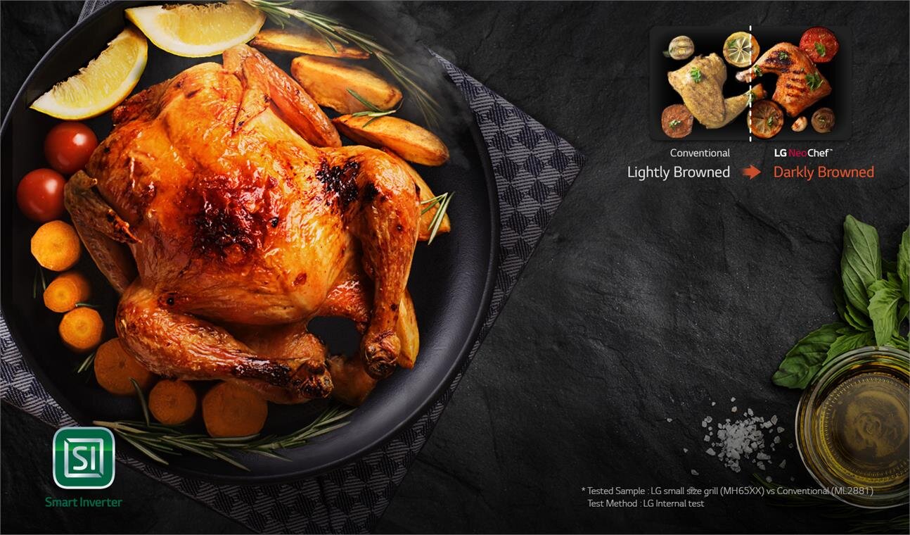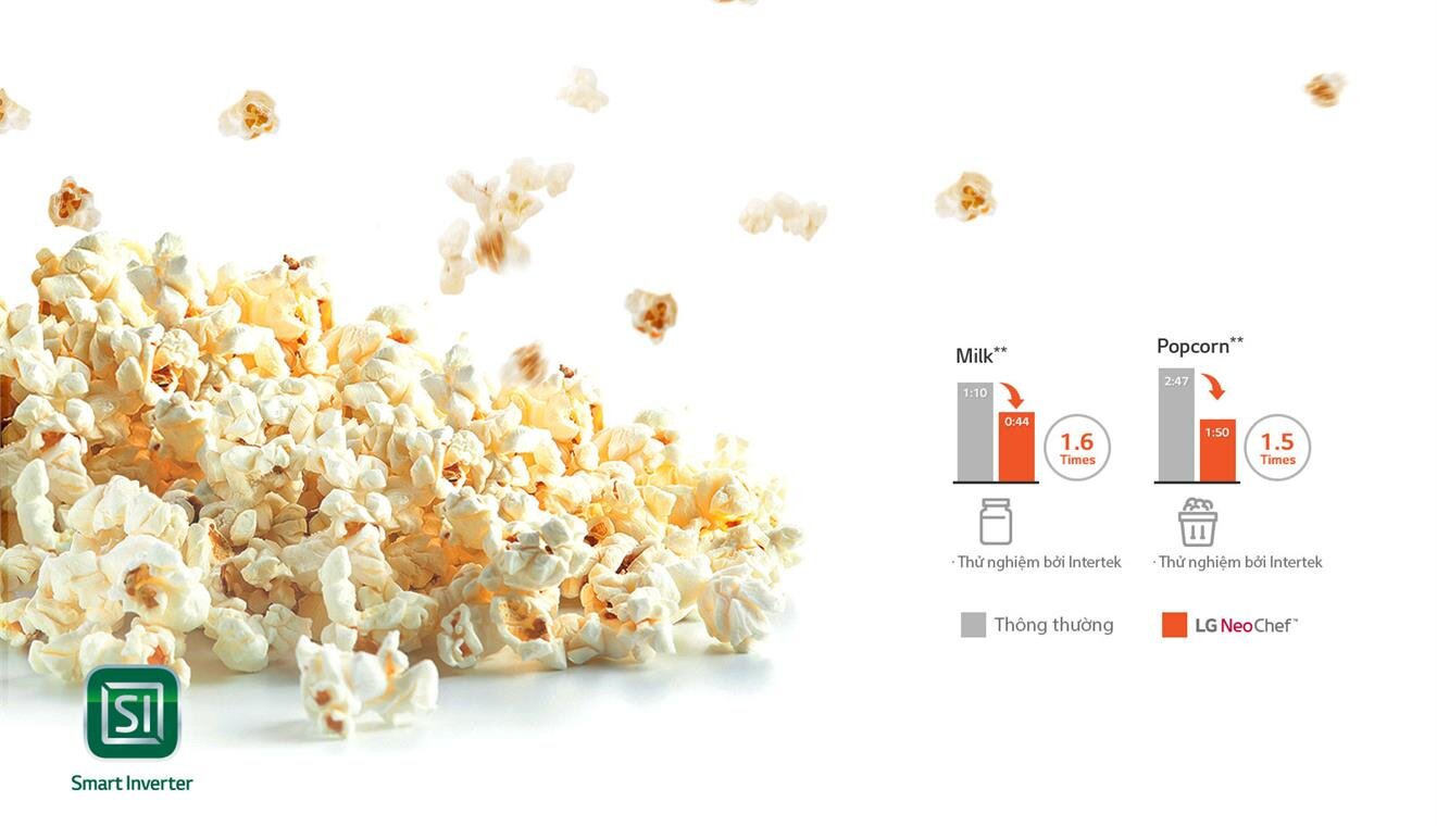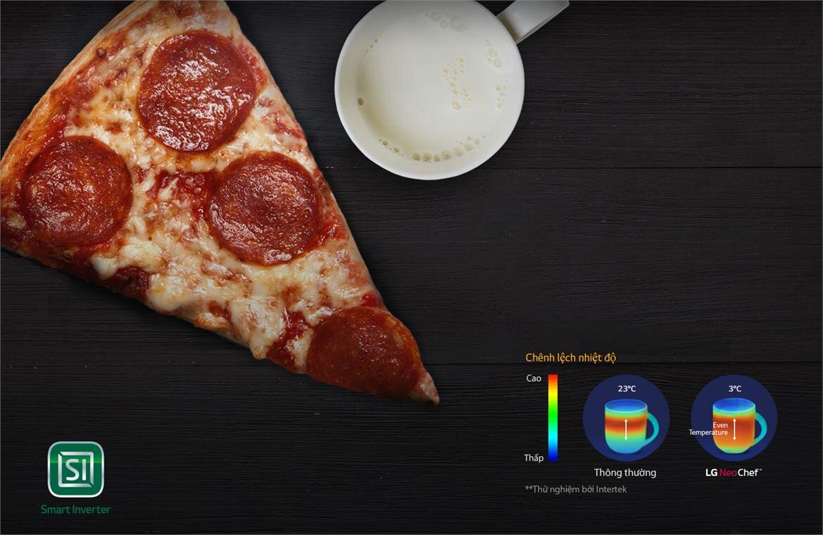 Công nghệ Smart Inverter Công nghệ Smart Inverter của LG mang đến công suất hoàn hảo để hâm nóng lại và rã đông nhiều loại thức ăn nhanh hơn bao giờ hết. Nhờ việc điều khiển nhiệt độ chính xác, bạn có thể nấu nhiều món ăn khác nhau mà trước đây lò vi sóng chưa thể làm được.