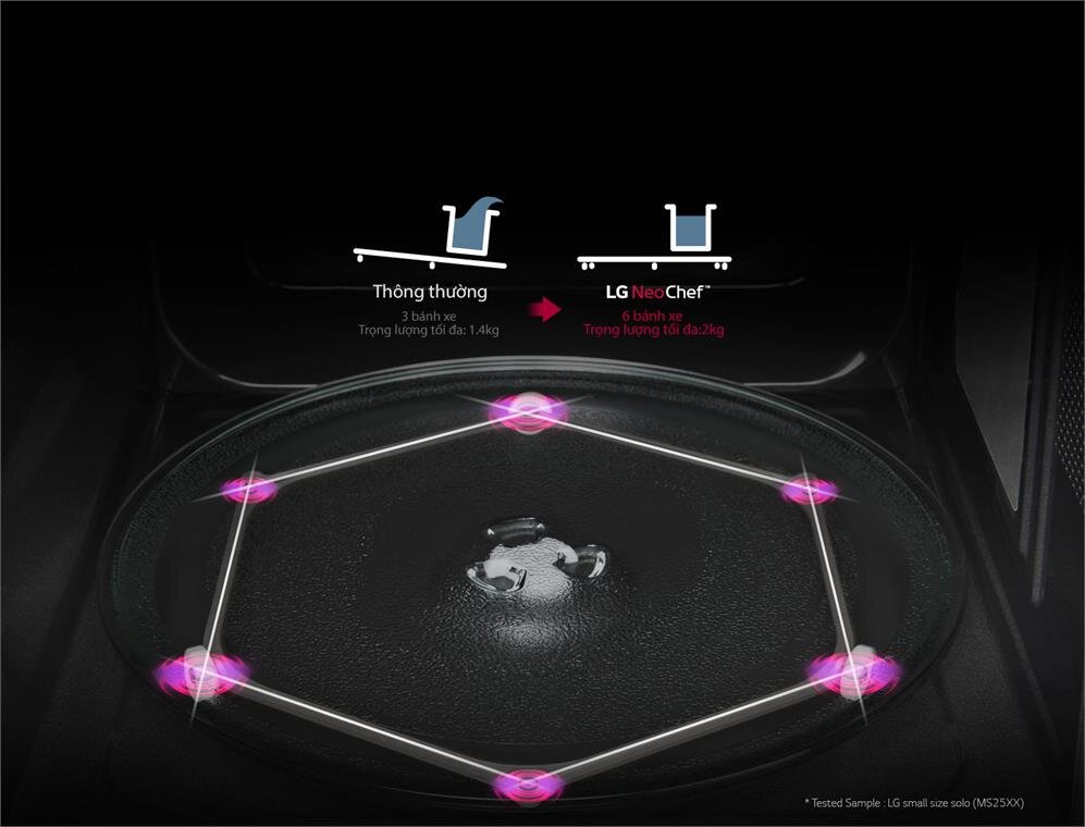 Đĩa xoay hình lục giác đổi mới giúp ổn định đĩa xoay với sáu điểm đỡ, ngăn không để thức ăn ngoài vùng chính giữa bị lật nghiêng và tràn ra ngoài trong quá trình nấu ăn.