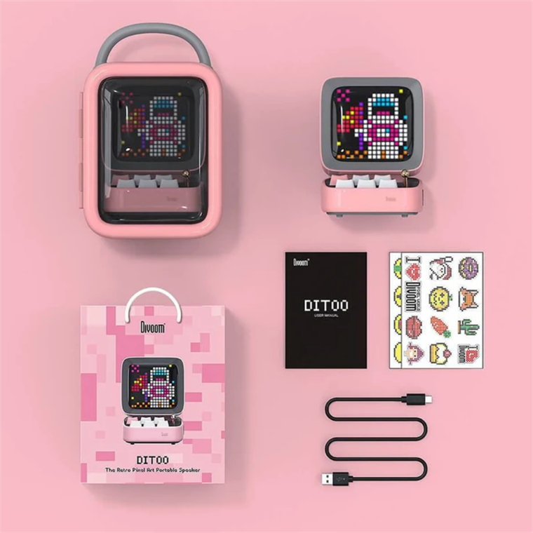 Tính năng: Là bản cải tiến so với Ditoo , vẫn giữ nguyên phong cách thiết kế retro tên từng chi tiết loa như hình dáng, bàn phím, cần điều khiển, hoài cổ về chiếc PC hay chiếc máy chơi game cổ điển Bề mặt được phủ bóng, sử dụng chất liệu nhựa cao cấp, chống trầy xước với 5 màu sắc trang nhã: Đen – Xanh dương – Xanh lá – Hồng – Trắng Trang bị màn hình LED 256 siêu khủng với 16 triệu màu đa dạng Bổ sung 99 màu sắc và hiệu ứng cho bàn phím Đặc biệt phát triển và cải thiện hơn về tính năng Pixel Art thông qua đề xuất của cộng đồng người dùng: - Giao diện người dùng dễ sử dụng - Nhiều công cụ sáng tạo - Kích thước Pixel Art 8-bit - Lựa chọn màu sắc sống động, đa dạng - Tạo hoạt ảnh Pixel - Trình chỉnh sửa văn bản với nền tùy chỉnh - Chuyển đổii hình ảnh sang thiết kế Pixel - Chuyển đổi thiết kế sang ảnh và GIF - Thư viện khổng lồ để chia sẻ - Tương tác với người hâm mộ nghệ thuật Pixel trên toàn cầu Tận hưởng chất âm cực đỉnh, chân thực và chuyên nghiệp bởi âm thanh đa hướng 360° cùng với bộ xử lý âm thanh DSP. Đặc biệt, thiết kế nâng cao âm bass mới mang lại trải nghiệm âm thanh tốt hơn, chất lượng hơn Tích hợp DJ Marker 3.0 hỗ trợ 96 hiệu ứng âm thanh & 23 nhạc cụ dành cho người yêu nhạc. Kết hợp với API Internet Radio, thoả sức khám phá nguồn tài nguyên âm nhạc với hơn 50,000 đài phát thanh trên toàn thế giới. Tích hợp các chức năng: Đồng hồ hiển thị giờ & báo thức, màn hình hỗ trợ giấc ngủ, báo thời tiết, Ghi âm - Voice memo, Hands-free calling, Pixel chat, Reto Pixel Games, Stopwatch & Timer, Scoreboard… Kết nối thông qua Bluetooth v5.0, hỗ trợ AUX và thẻ TF Hiệu năng tốt, thời gian phát nhạc liên tục lên đến 6h-8h