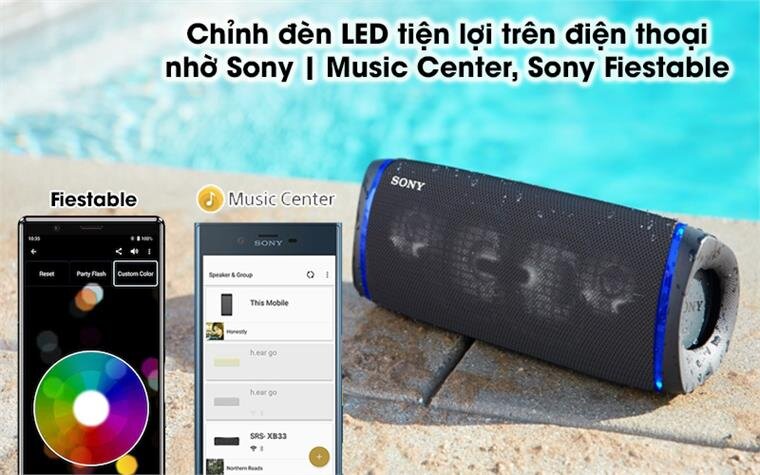 Điều khiển đèn LED linh hoạt qua Sony Fiestable, Sony | Music Center trên điện thoại - Fiestable: Kiểm soát chế độ đèn LED, điều khiển chuyển động. - Sony | Music Center: Dễ dàng tạo danh sách bản nhạc yêu thích, chuyển bài, đổi chế độ âm thanh, ánh sáng.